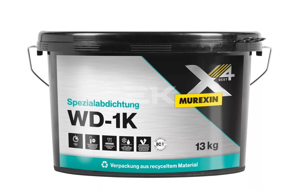 A Murexin Wd-1K ideális fürdőszobák, erkélyek, teraszok és alagsorok szigetelésére. Alkalmas mind új építkezéseknél, mind felújítások során történő alkalmazásra.