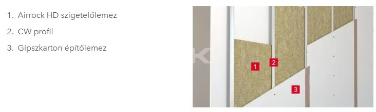 Az Airrock HD (HD = High Density, nagy testsűrűség) lemezek felhasználása elsősorban a magasabb akusztikai követelményeket kielégítő szerelt gipszkarton válaszfalak akusztikai hangszigetelő betéteként ajánlott.