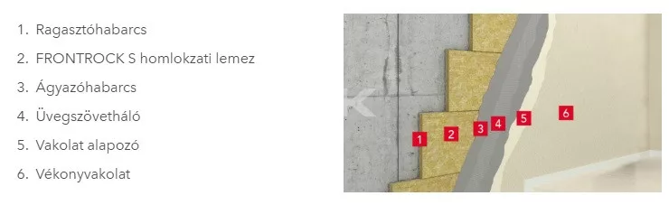 A Frontrock S rögzítése részleges felületű felragasztás és dübelezés egyidejű alkalmazásával történik. Ásványgyapothoz ajánlott ragasztó- és ágyazóhabarccsal, és minősített dübelekkel együtt használható. Az adatlap és a teljesítmény nyilatkozat a gyártói javaslatokkal és rendszergazdai kivitelezési utasításokkal együtt érvényes.