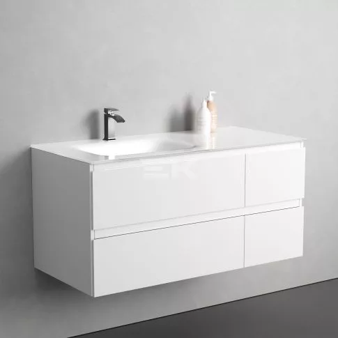 Sanotechnik CUBE 100 függesztett bútorszett, üvegmosdóval, fehér